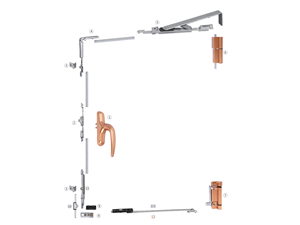 配件執(zhí)手、合頁(yè)可通過(guò)調(diào)節(jié)適用于左、右式門窗。